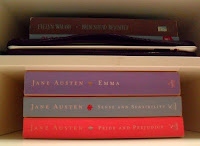 Jane Austen's Emma, Sense & Sensibility and Pride & Prejudice as well as my current read Brideshead Revisited, a book about blogging and my iPad in its Kate Spade case